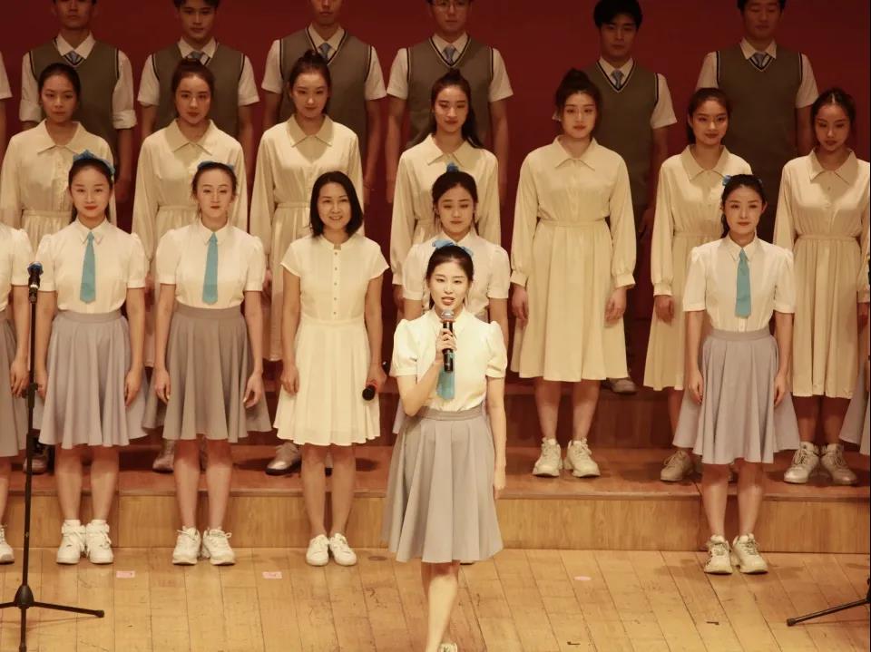 的学生用充满青春活力的精神面貌给大家演唱了《长江之歌》,歌颂出了中国人民对祖国的热爱。