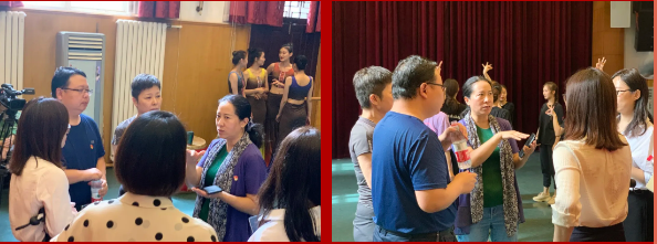在本次傣族舞蹈第二课堂上,马啸老师强调大学生课堂实践要摆脱“后中专”时代的教学方式,应多方面训练学生的综合能力,学会“科学增负”。她说道:“舞蹈动作在学习过程中,会经常强调动作性,但是4位展示研究生动作略有不同,这是艺术的不同性和魅力所在。”她强调了音乐在舞蹈学习中的重要性。音乐的节奏、音色、韵律、强弱等不同表现方式要配合动作的变化和要求。不同乐器的使用也凸显了舞蹈民族性风格。接着,她谈到身体骨骼的问题,就4位研究生展示的傣族舞蹈组合,谈到了傣族舞蹈的曲身,腿部力量、空间变化、舞蹈动作随音乐节奏发生变化等问题。她还指出舞蹈中身体的共性和个性问题。其中,共性的有节奏、方位、路线等,个性则指不同的意识和状态。