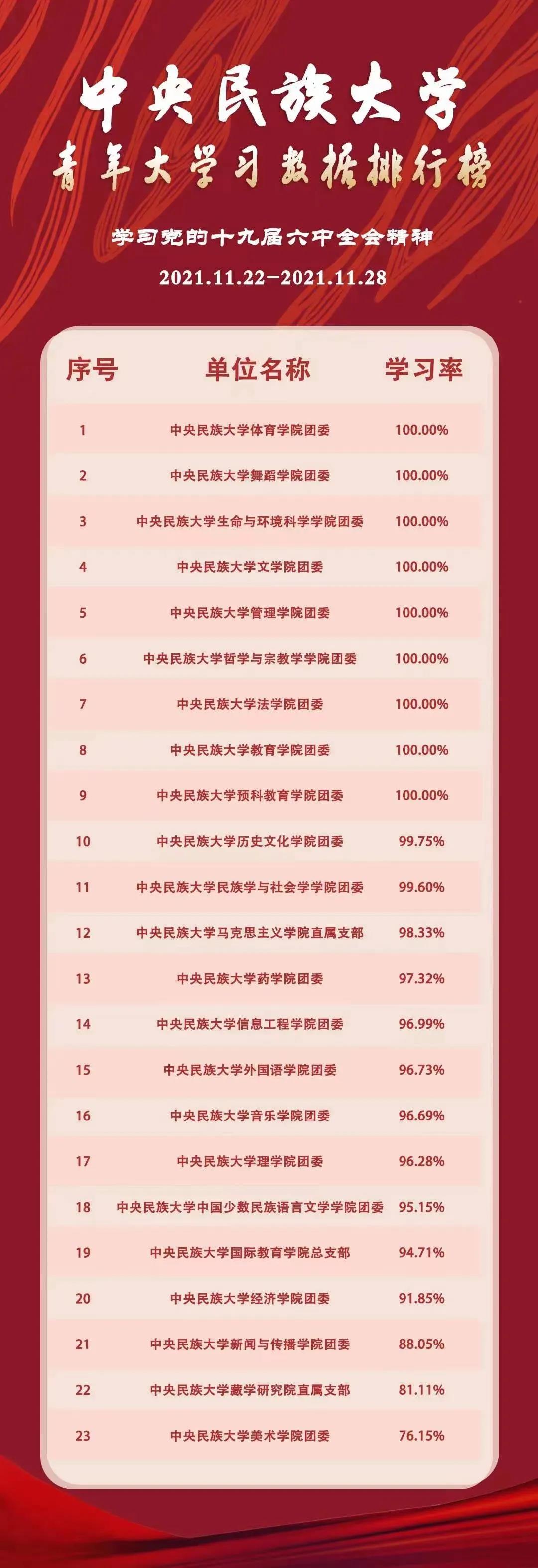 的同学们积极参与青年大学习网上主题团课,团学参与率均为100%位列第一,值得表扬,希望各团支部继续保持。