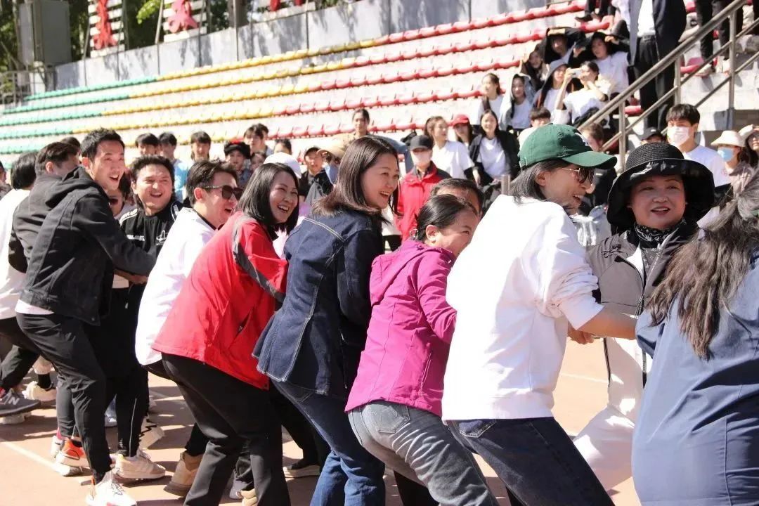 特别是在特色运动竞赛项目两人三足、三人板鞋和旋风跑,以及教师竞赛项目抛绣球上,师生们在积极参赛、轻松上阵的同时,依然不言放弃、拼尽全力。以多人的配合,冲刺速度,不断突破自我,用坚韧不拔的精神和永不言弃的意志,赢得观众们此起彼伏的欢呼声和呐喊声。