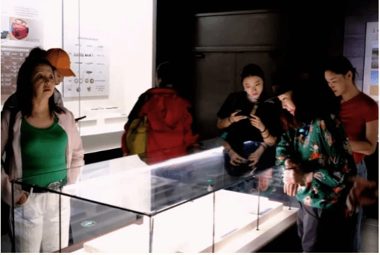 在内蒙古形象主体美术作品展的展厅内,一幅幅生动的画作更是让采风小分队成员们流连忘返。这些画作以内蒙古的自然风光和民族文化为主体,用色彩和线条展现了这片土地的壮丽与美丽。哈斯敖登老师引导大家用弧线思维思考问题,从画作中感受艺术家的创作灵感和情感表达,同时也让大家对内蒙古的文化和艺术有了更深入地了解。